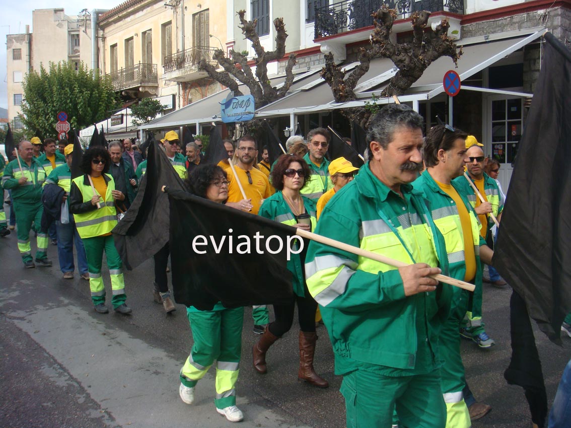 Ούτε η καταρρακτώδης βροχή που ξέσπασε όταν η πορεία  βρισκόταν στην Νεάπολη μπόρεσε να σταματήσει τους εργαζόμενους-ανέργους της Χαλκίδας και τους εκπροσώπους της Τοπικής Αυτοδιοίκησης οι οποίοι πήραν μέρος στην σημερινή κινητοποίηση που διοργάνωσαν η ΓΣΕΕ και η ΑΔΕΔΥ.