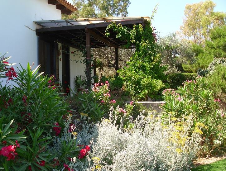 Το καταφύγιό της στα Λουτρά Αγίας Ελένης που βρίσκεται σε απόσταση αναπνοής από τη θάλασσα με τον τεράστιο κήπο γεμάτο λοουλούδια.
