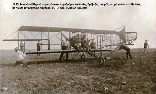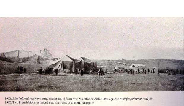 Στη συνέχεια το 1912 αγόρασε 4 αεροπλάνα. Αυτά προσγειώθηκαν τον Οκτώβριο του 1912 στο «Αεροδρόμιο Νικόπολης» απέναντι από την ψησταριά του Αρίστου Ακρίβη, και από εκεί έκαναν αναγνωριστικές πτήσεις στό Μπιζάνι.