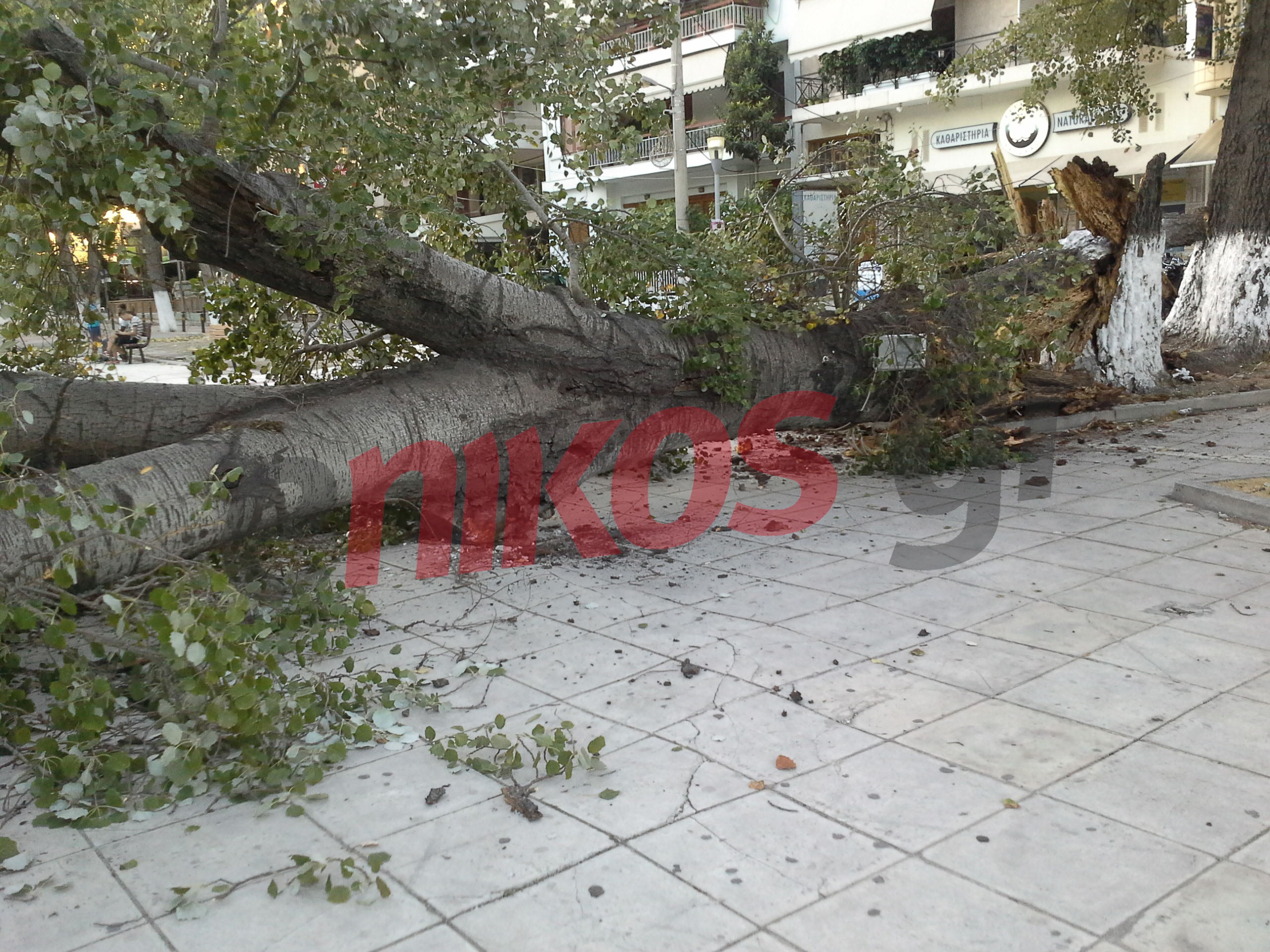 Το περιστατικό συνέβη το μεσημέρι του Σαββάτου, λίγο μετά τις 3. Το τριήμερο του 15άυγουστου, ο καύσωνας αλλά και η ώρα, συνέβαλαν στο να μην υπάρχει κόσμος εκείνη την ώρα στην πλατεία, διαφορετικά, θα μπορούσαμε να μετράμε ένα ακόμα ανάλογο περιστατικό σαν και αυτό που σημειώθηκε στα τέλη Ιουλίου στην Λαμία, όταν ξεριζώθηκε ο πλάτανος της κεντρικής πλατείας του χωριού Κομποτάδες, καταπλάκωσε και σκότωσε ένα 9χρονο αγγελούδι.