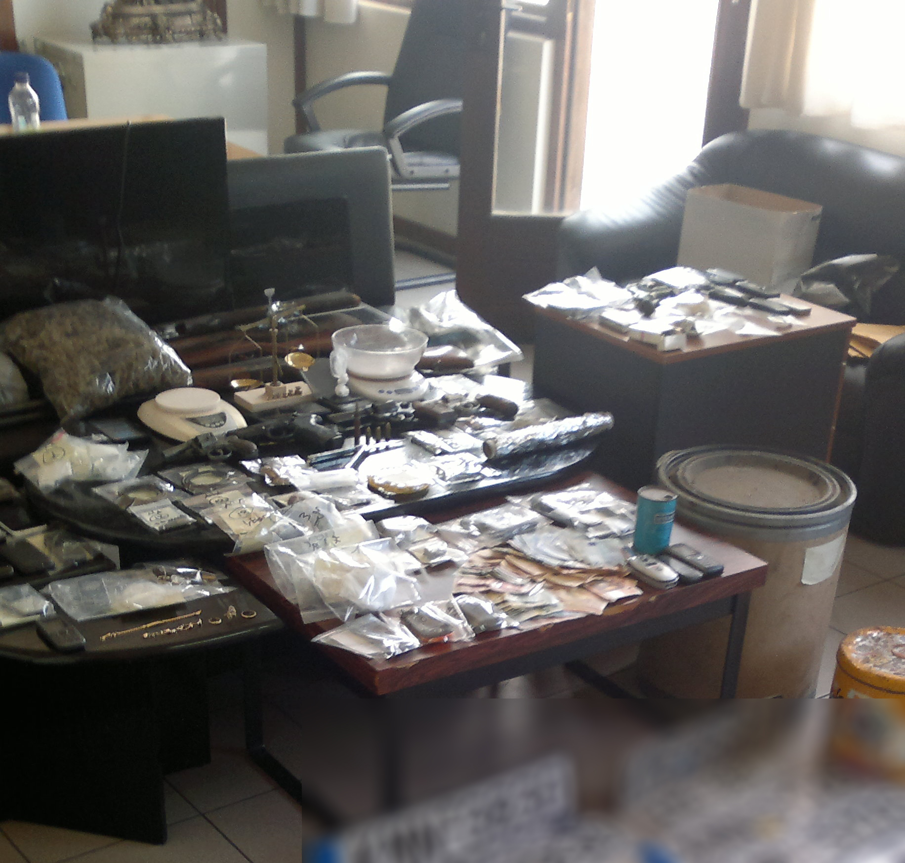 Διενεργήθηκε μεγάλος αριθμός ερευνών σε οικίες και λοιπούς χώρους, παρουσία εισαγγελικών λειτουργών, ενώ κατασχέθηκαν, μεταξύ άλλων, ναρκωτικές ουσίες, όπλα, χρήματα, οχήματα, ποσότητα εκρηκτικών κ.α.