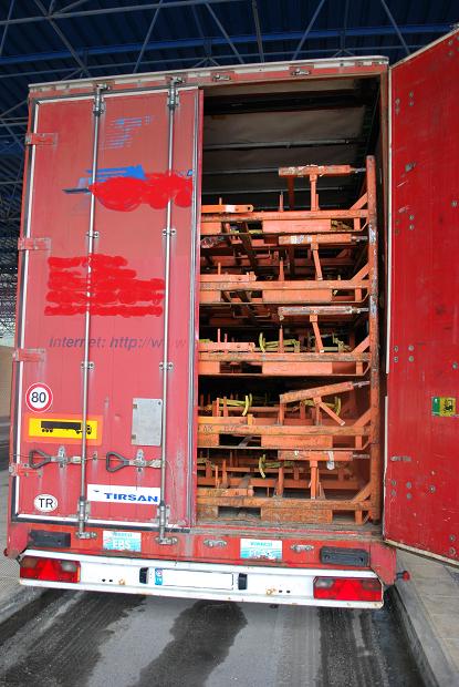 Διαπιστώθηκε, επίσης ότι οι καρότσες των οχημάτων έφεραν σφραγίδες τελωνείου, τα σύρματα των οποίων ήταν παραβιασμένα και επιμελώς επανασυνδεμένα, προκειμένου να παραπλανηθούν οι ελεγκτικές Αρχές, ενώ τα φορτηγά μετέφεραν παλέτες και υφάσματα.