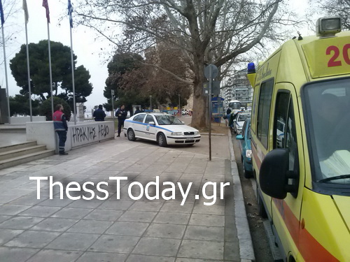 Εξαιτίας του περιστατικού με τον νεαρό άνδρα που απειλεί να ανατιναχτεί με χειροβομβίδα, που όπως ισχυρίζεται έχει στην τσέπη του, το άγημα που καθημερινά πραγματοποιεί την έπαρση της γαλανόλευκης πάνω στον Λευκό Πύργο δεν κατάφερε να μπει κι έτσι ο Πύργος έμεινε χωρίς σημαία.