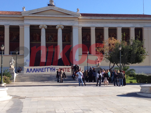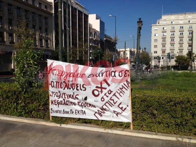 Από νωρίς οι διοικητικοί υπάλληλοι των Πανεπιστημίων ύψωσαν πανό στα προπύλαια…
