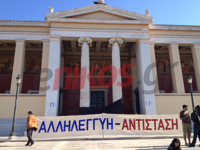 ΦΩΤΟ-Ύψωσαν πανό στα προπύλαια
