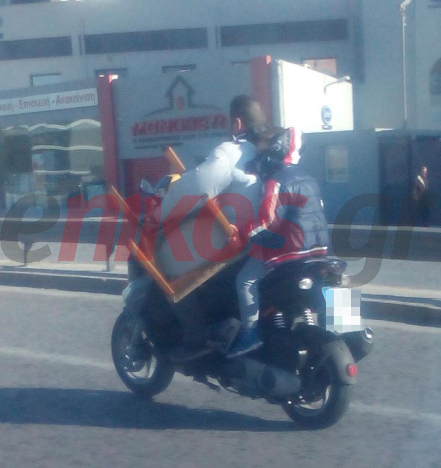 Τα περιστατικά με τους ανεύθυνους γονείς – οδηγούς δικύκλων – οι οποίοι θέτουν τους ίδιους, αλλά και τα παιδιά τους σε κίνδυνο, φαίνεται να μην έχουν τελειωμό. Χαρακτηριστικό παράδειγμα τέτοιων, παράλογων και επικίνδυνων, επιλογών είναι και η παρακάτω φωτογραφία που έστειλε αναγνώστης του enikos.gr.Στη φωτογραφία απεικονίζεται ένας αναβάτης δικύκλου να έχει πίσω του ένα μικρό παιδί, το οποίο κρατιέται από το πόδι του τραπεζιού που μεταφέρει με το ένα χέρι ο οδηγός!