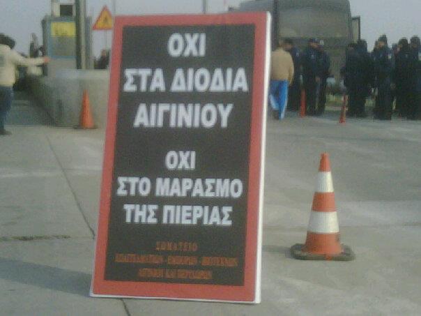 Σε εξέλιξη βρίσκεται η κατάληψη του σταθμού διοδίων στο Αιγίνιο από κατοίκους της Πιερίας, με σκοπό την αποτροπή της λειτουργίας του.