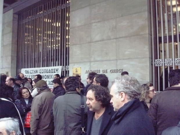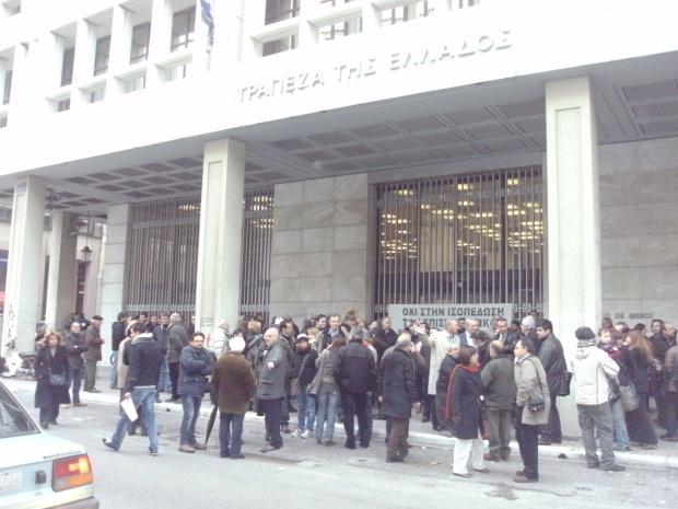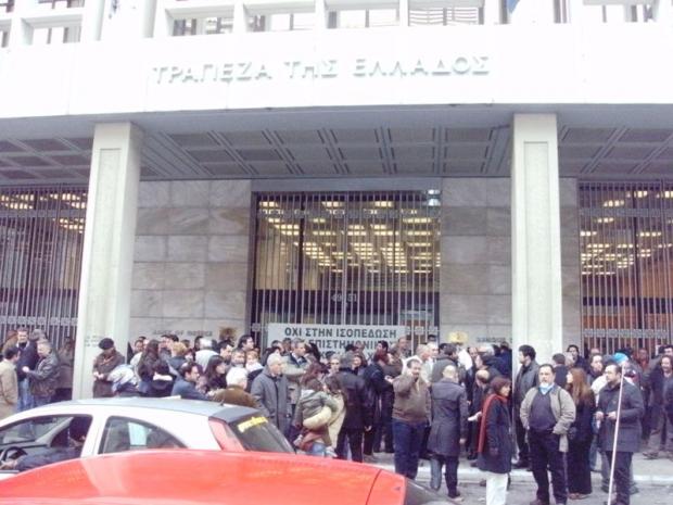 Σε συμβολική κατάληψη της Τράπεζας της Ελλάδας στην οδό Αγίου Ανδρέου στην Πάτρα, έχουν προχωρήσει οι μηχανικοί, οι δικηγόροι και οι γιατροί της Πάτρας.Με τον τρόπο αυτό διαμαρτύρονται για τη διαχείριση των αποθεματικών των ασφαλιστικών τους Ταμείων, τα οποία έχουν επενδυθεί σε ομόλογα του Ελληνικού Δημοσίου και τώρα κινδυνεύουν με 50% κούρεμα της αξίας τους.