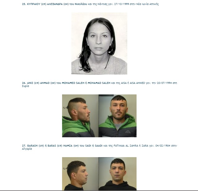 Δίνονται στη δημοσιότητα, κατόπιν σχετικής Διάταξης της Εισαγγελίας Πρωτοδικών Αθηνών, τα στοιχεία ταυτότητας και οι φωτογραφίες 29 μελών εγκληματικής οργάνωσης που δραστηριοποιείτο συστηματικά στη διάθεση και εμπορία ναρκωτικών ουσιών στην Πλατεία Εξαρχείων και στις περιμετρικές οδούς και εξαρθρώθηκε στις 17 Μαρτίου από την Υποδιεύθυνση Ασφάλειας Αθηνών.
