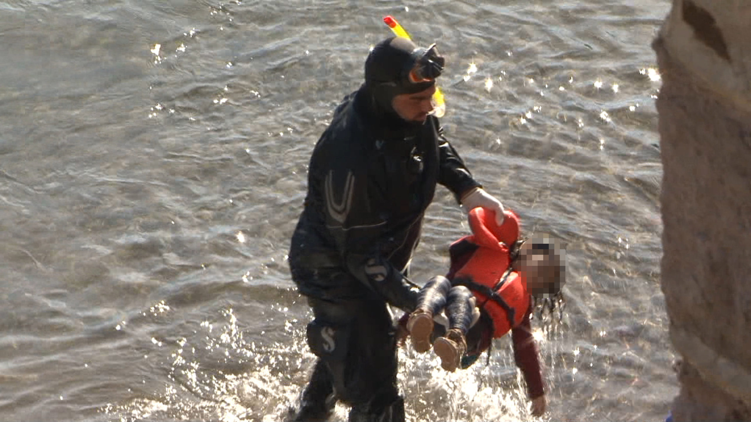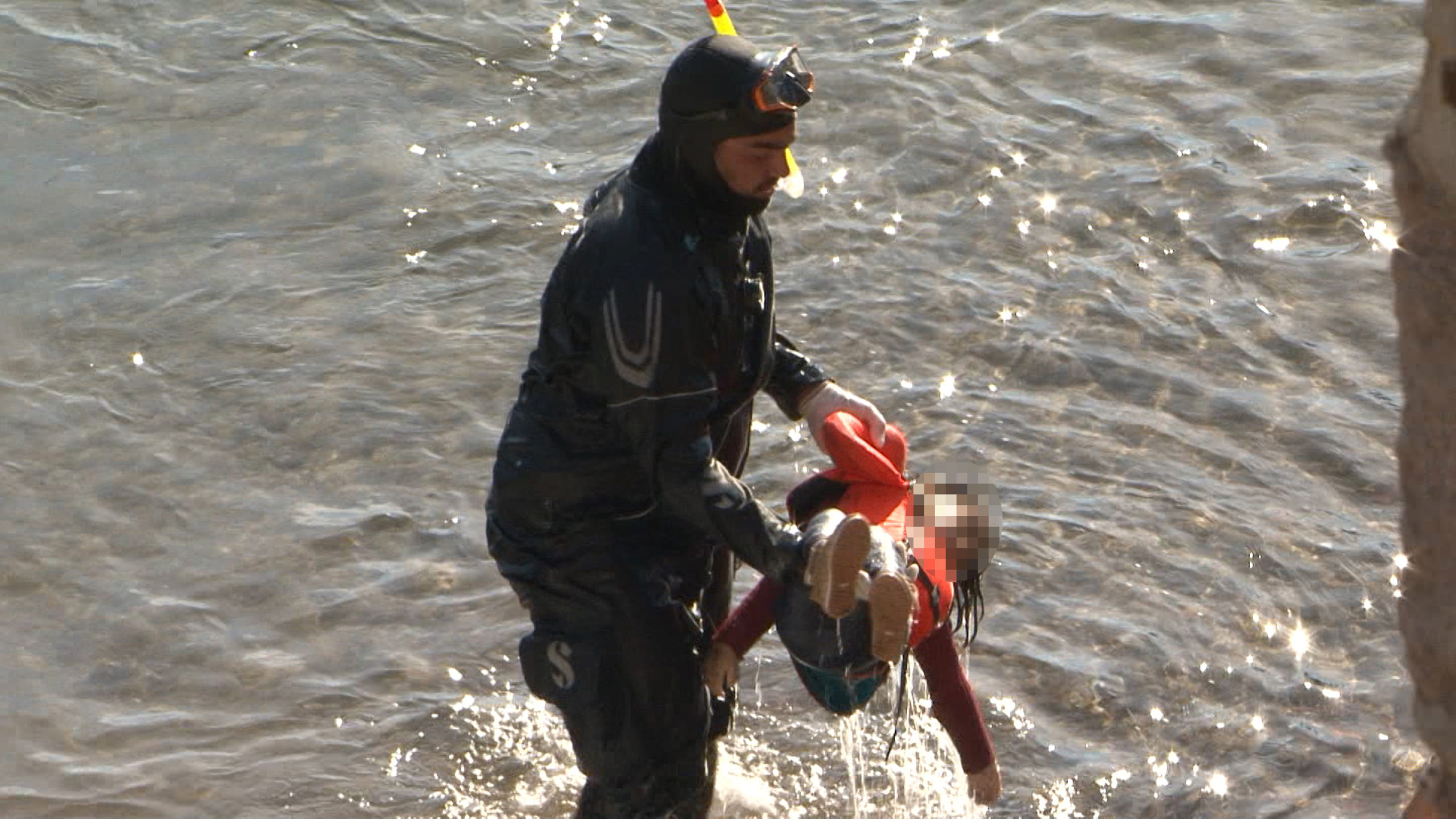 Σοκάρουν οι φωτογραφίες με τον βατραχάνθρωπο να μεταφέρει τη σορό ενός παιδιού που πνίγηκε μετά το τραγικό ναυτικό ατύχημα στη Λέσβο, όταν φουσκωτό σκάφος που μετέφερε πρόσφυγες βυθίστηκε στη θαλάσσια περιοχή του Μολύβου.
