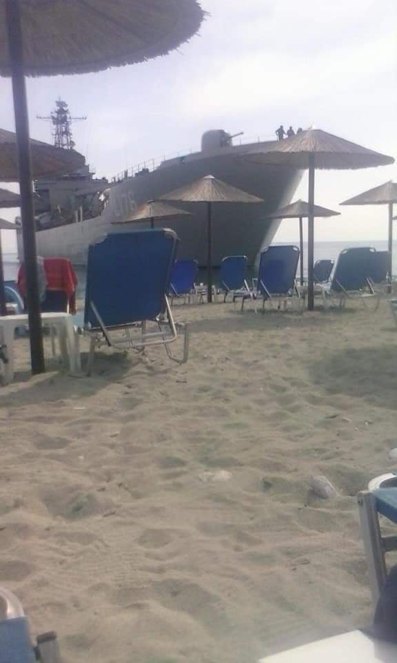 Άφωνοι έμειναν οι εργαζόμενοι στο beach bar “Gallaria” στον Νέο Παντελεήμονα Πιερίας, όταν είδαν ένα αρματαγωγό του Πολεμικού Ναυτικού να βρίσκεται ακριβώς μπροστά από τις ξαπλώστρες του καταστήματος. Το «Α/Γ ΛΕΣΒΟΣ L176», είχε δέσει μπροστά στις ομπρέλες και τις ξαπλώστρες και όπως είπαν στον “Ελεύθερο Τύπο” οι υπάλληλοι στην ευρύτερη περιοχή του Λιτοχώρου βρίσκεται σε εξέλιξη στρατιωτική άσκηση. Προσερχόμενοι στο beach bar, είδαν μεγάλη κινητικότητα του Λιμενικού Σώματος, στελέχη του οποίου επιτηρούσαν την παραλία, ενώ το αρματαγωγό ήταν σε κοντινή απόσταση.