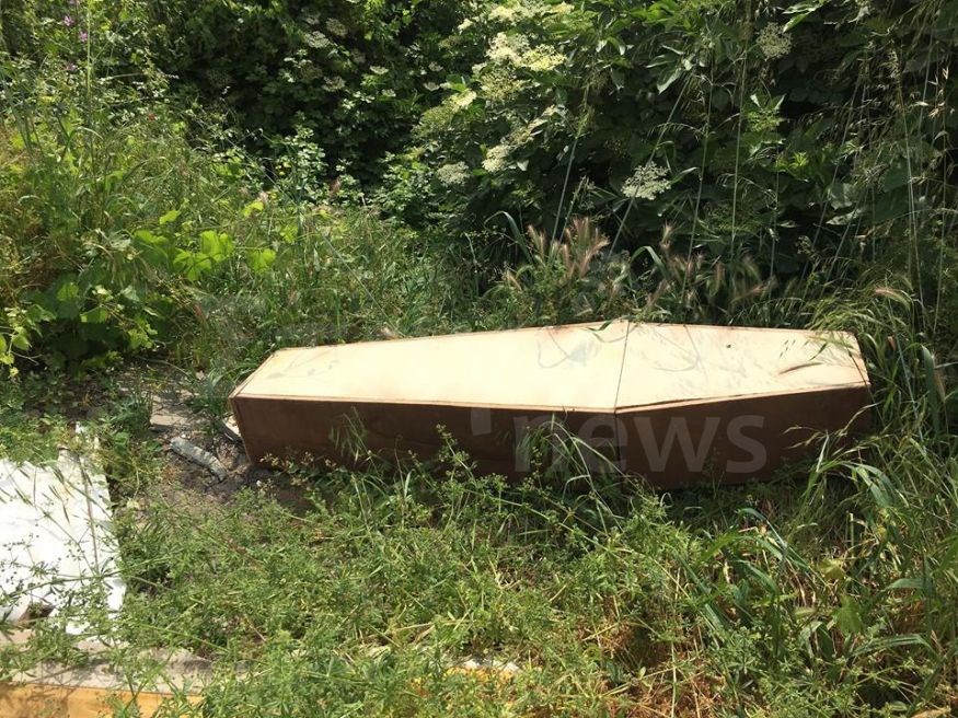 Το φέρετρο ήταν αναποδογυρισμένο, με το μήκος του να μην ξεπερνά το 1,5 μέτρο. Αμέσως ειδοποιήθηκε η αστυνομία, η οποία έφτασε στο σημείο.