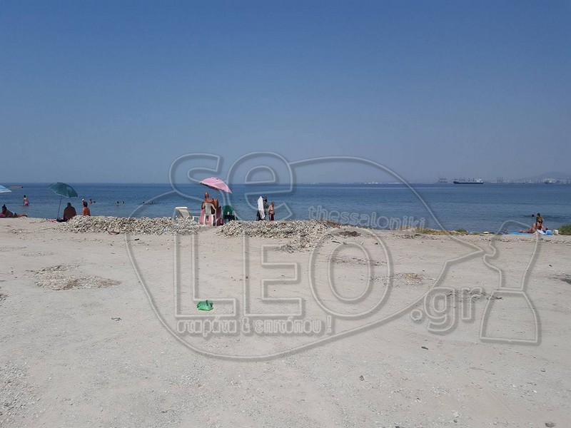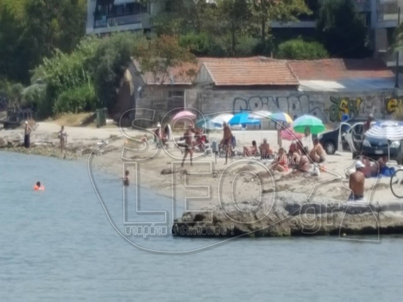 Λουόμενοι πήραν τις ομπρέλες τους και τα καθίσματά τους και μετέτρεψαν την Καλαμαριά σε παραλία.