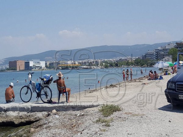 Οικογένειες με μικρά παιδιά και ηλικιωμένοι αποφάσισαν να μην ταλαιπωρηθούν με την κίνηση στους δρόμους για την Χαλκιδική και κάνουν βουτιές μέσα στην πόλη.
