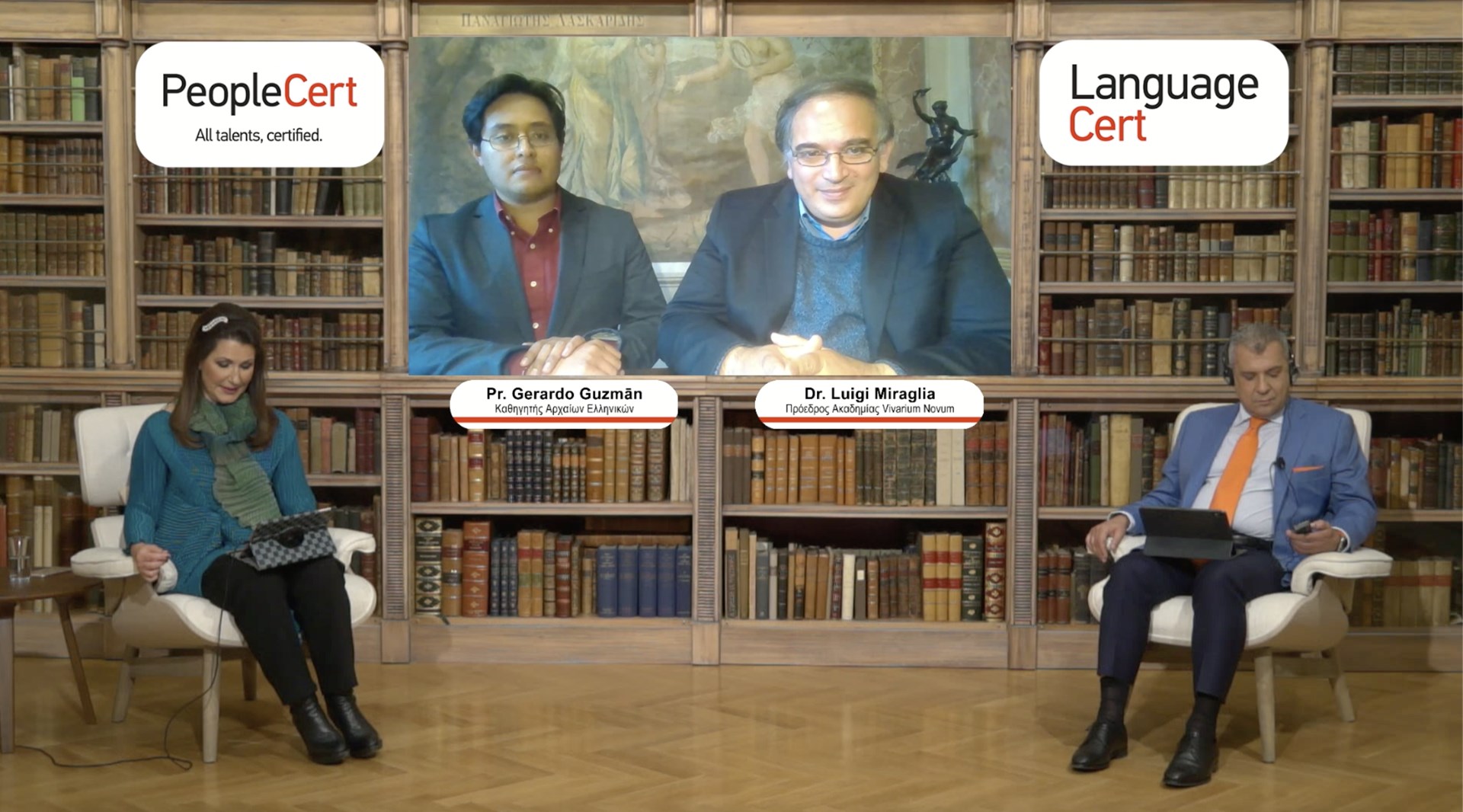 Για τη νέα πιστοποίηση μίλησαν η Πρόεδρος των Εταιρείας Ελλήνων Φιλολόγων και Πρόεδρος της Τεχνικής Επιτροπής Ανάπτυξης των Εξετάσεων, καθηγήτρια κα Γεωργία Ξανθάκη – Καραμάνου και οι πανεπιστημιακοί και μέλη της επιτροπής: κ.κ. Dr Luigi Miraglia, Πρόεδρος της Ακαδημίας Κλασσικών Γλωσσών στη Ρώμη “Vivarium Novum», η καθηγήτρια Κλασικών Σπουδών και διευθύντρια του TLG (Thesaurus Linguae Graecae) στο Πανεπιστήμιο Irvine της Καλιφόρνιας Δρ Mαρία Παντελιά καθώς και ο καθηγητής της Νεοελληνικής και διευθυντής του Προγράμματος Νεοελληνικών Σπουδών στο Πανεπιστήμιο του Μόντρεαλ Dr. Jacques Bouchard.
