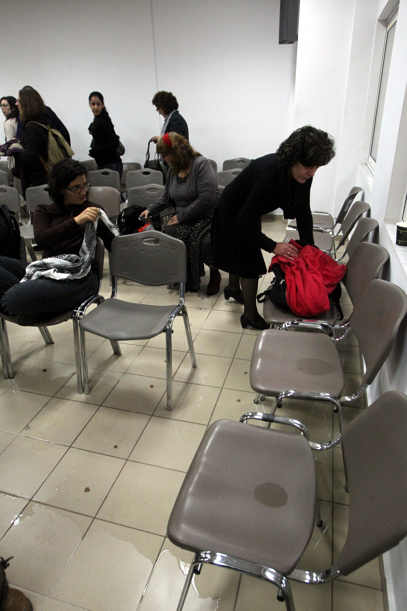Με νερά από την έντονη βροχόπτωση γέμισε η αίθουσα στο τριμελές Εφετείο Κακουργημάτων, όπου δικάζει την ηγεσία, στελέχη και μέλη της Χρυσής Αυγής για βίαιες αιματηρές πράξεις, που καταλογίζονται στους κατηγορούμενους, με αποτέλεσμα να διακοπή προσωρινά η δίκη.