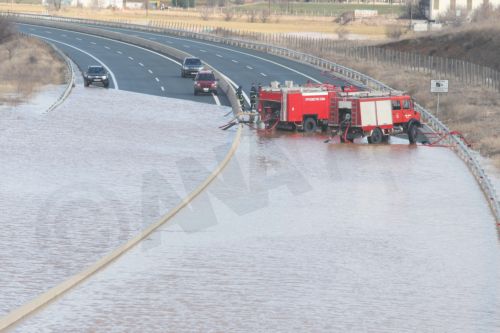 Ισχυρή βροχόπτωση σημειώθηκε στην Κοζάνη, με αποτέλεσμα να πλημμυρίσει η Εγνατία Οδός, στο ύψος της Καλαμιάς Κοζάνης. Όπως φαίνεται και στις φωτογραφίες η Εγνατία Οδός, έχει μετατραπεί σε ποτάμι.