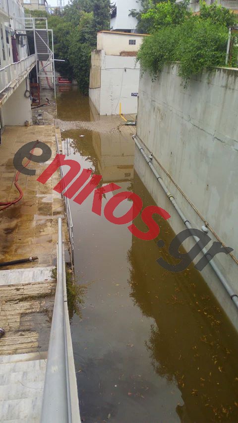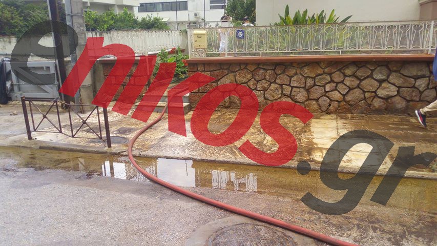 Στο σημείο έχει σπεύσει όχημα της Πυροσβεστικής Υπηρεσίας με σκοπό την απάντληση των υδάτων.
