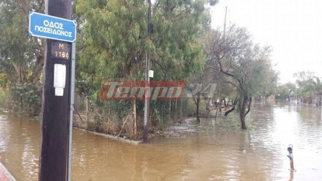 Πολύ σοβαρά προβλήματα δημιούργησε η κακοκαιρία στο Ρίο Αχαΐας. Η οδός Ποσειδώνος έχει πλημμυρίσει.