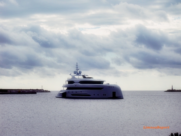 Με το στόμα ανοιχτό έμειναν το μεσημέρι της Δευτέρας όσοι είδαν ένα επιβλητικό γιοτ να μπαίνει στο λιμάνι της Μύρινας στη Λήμνο.