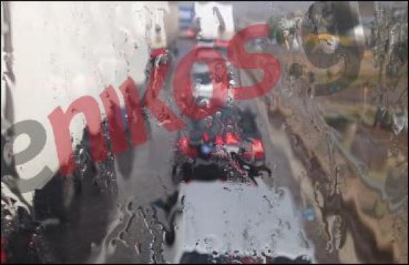 Η λεωφόρος Αθηνών μετατράπηκε σε ένα απέραντο πάρκινγκ αυτοκινήτων. Η νεροποντή ανάγκασε τους οδηγούς να κινούνται με μικρές ταχύτητες.
