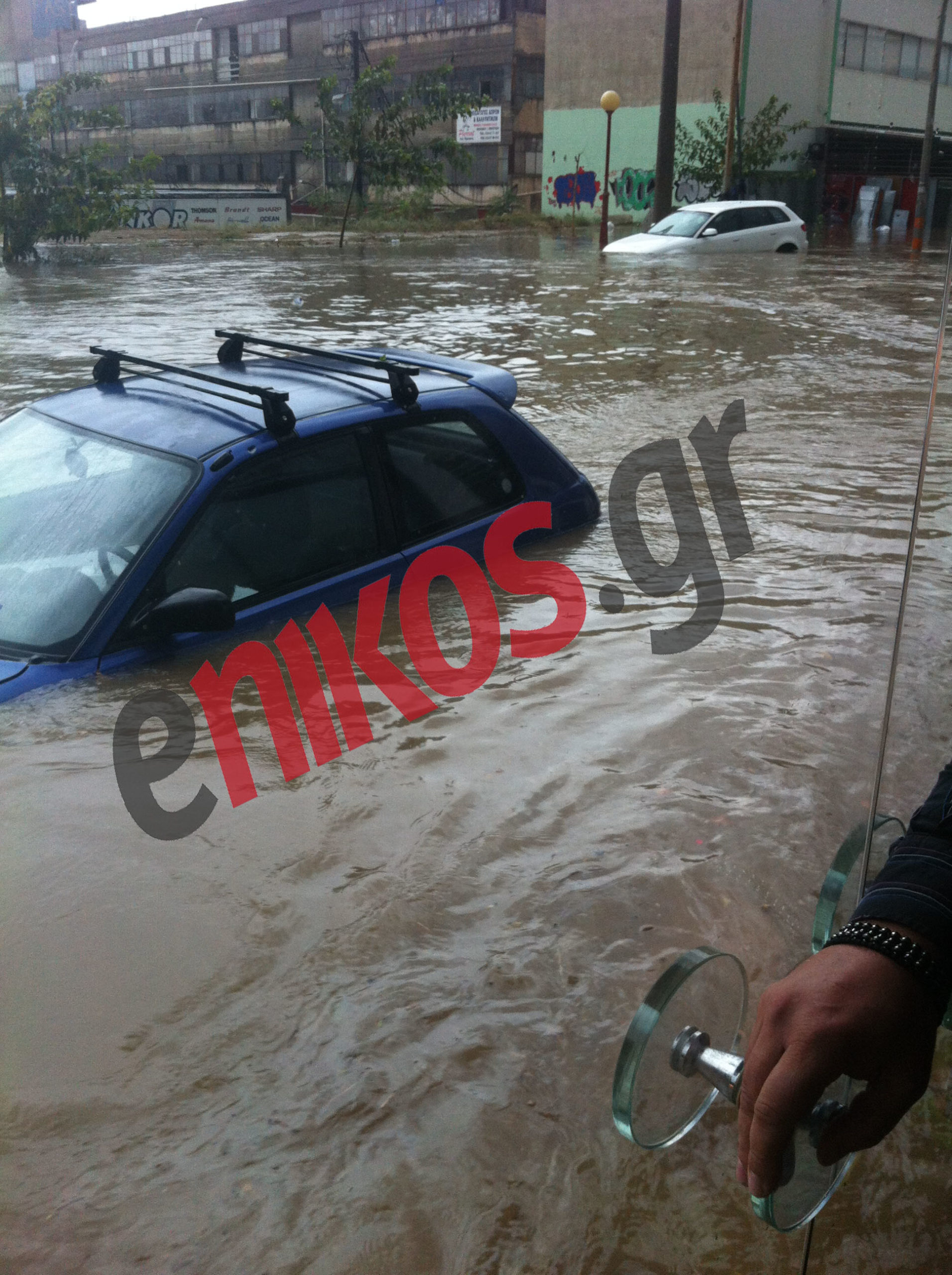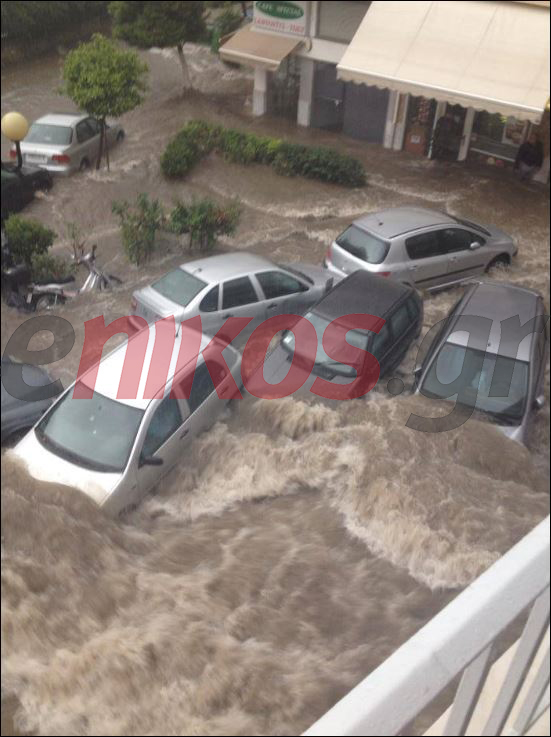 Οι δρόμοι στην Παλιά Κοκκινιά περιοχή μετατράπηκαν σε ορμητικούς χειμάρρους, ενώ πολλά αυτοκίνητα παρασύρθηκαν και υπέστησαν μεγάλες ζημιές.