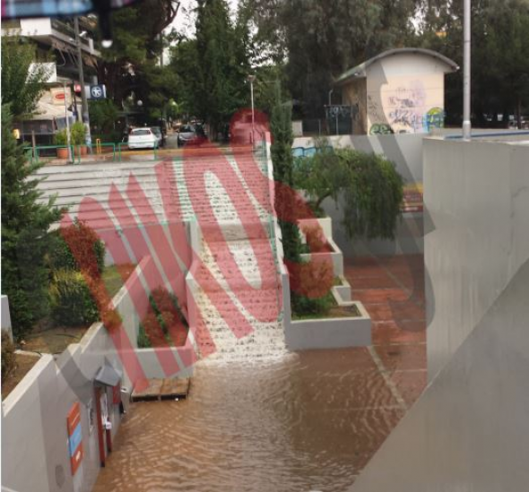Ο σταθμός του ηλεκτρικού στο Νέο Ηράκλειο «πλημμύρισε», αφού η έντονη βροχόπτωση που έπληξε την πρωτεύουσα είχε ως αποτέλεσμα να συσσωρευτεί μεγάλος όγκος νερού στην είσοδο και στις διαβάσεις του σταθμού.