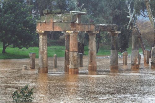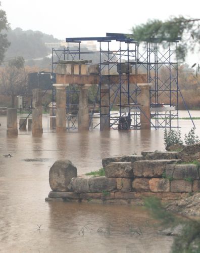 Σε ποτάμια μετατράπηκαν οι δρόμοι στην Βραυρώνα, λόγω της ισχυρής βροχόπτωσης που σημειώθηκε τις προηγούμενες ώρες. Όπως φαίνεται και στις φωτογραφίες, σπίτια, κτήματα, αλλά και ο ναός της Αρτέμιδος στον αρχαιολογικό χώρο της Βραυρώνας, πλημμύρισαν από λασπόνερα.