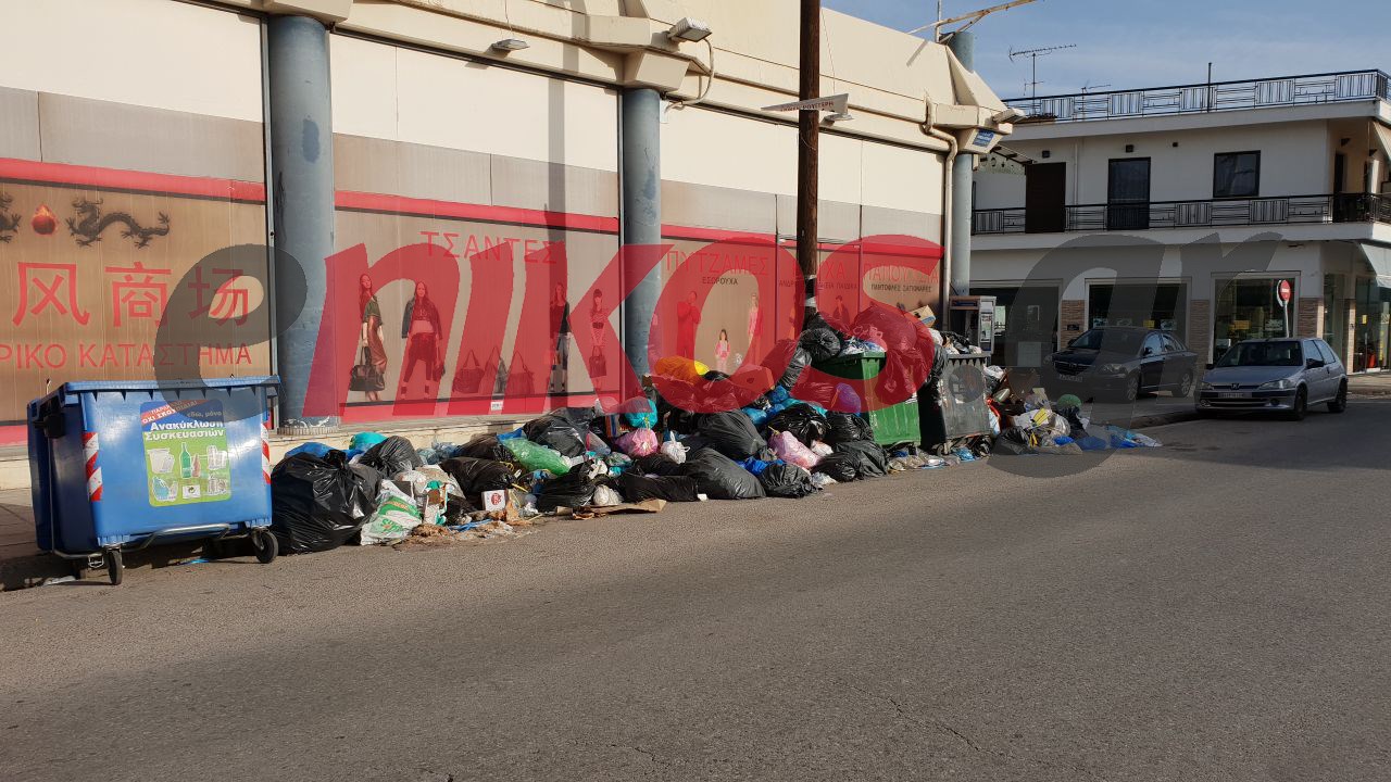Σε χωματερή έχει μετατραπεί το κέντρο του Αιγίου, καθώς “βουνά” σκουπιδιών έχουν δημιουργηθεί έξω από τους κάδους απορριμμάτων που βρίσκονται στην πόλη.