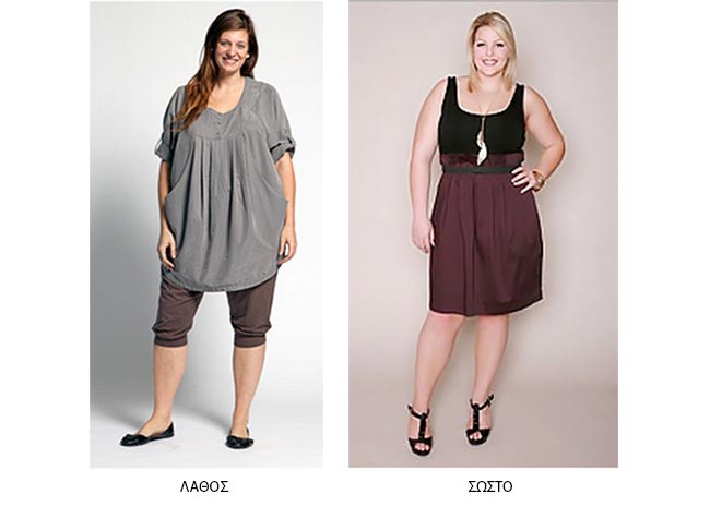 Τα ρούχα που είναι πάρα πολύ φαρδιά κάνουν το μάτι να αντιλαμβάνεται το σώμα σαν μια ενιαία μεγάλη επιφάνεια και μας κάνει να μοιάζουμε βαρύτερες από ό,τι πραγματικά είμαστε. Από την άλλη τα ρούχα που είναι πάρα πολύ σφιχτά θα δείξουν κάθε ελάττωμα που έχει το στο σώμα μας. Μόνο τα ρούχα που μας ταιριάζουν σωστά μας κολακεύουν!