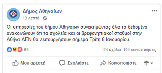 3.Εφόσον χρειαστεί κάποιες σχολικές μονάδες να μη λειτουργήσουν, οι ενδιαφερόμενοι θα ενημερώνονται μέσω ανακοίνωσης από τα αρμόδια Γραφεία των Δημάρχων. Αυτό θα γίνεται μετά από εκτίμηση των οικείων δημοτικών αρχών.