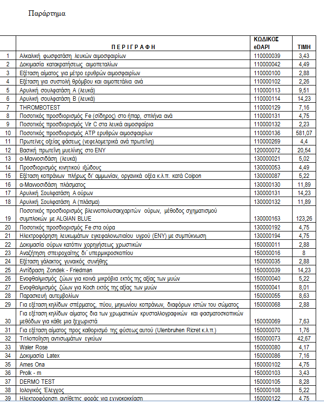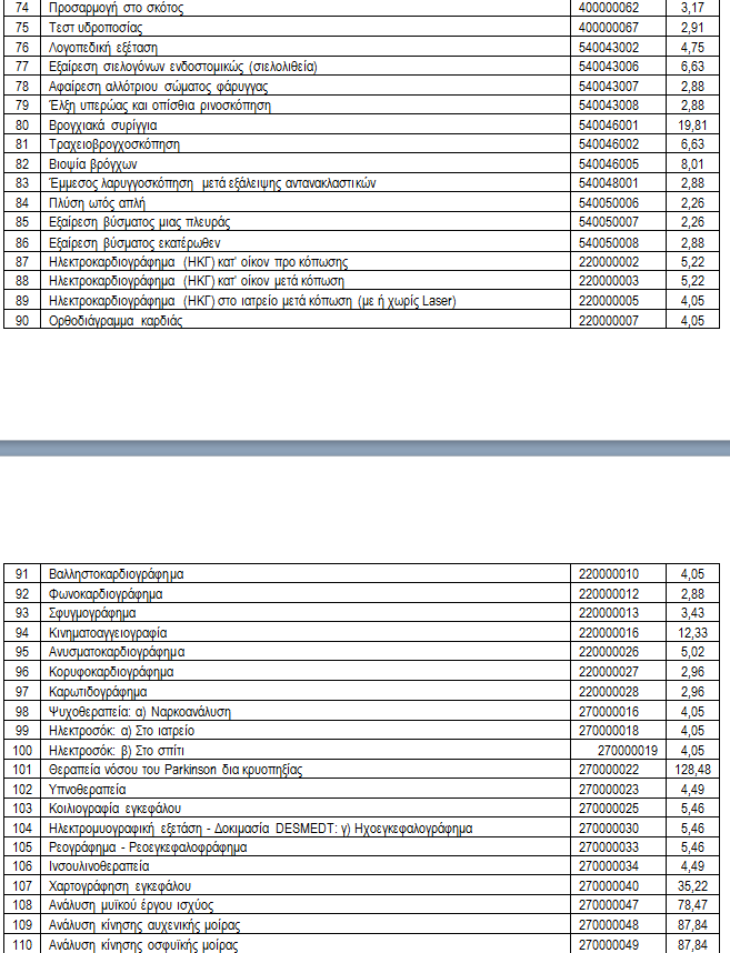 Οι διαγνωστικές και θεραπευτικές πράξεις που περιλαμβάνονται στον κατάλογο δεν θα αποζημιώνονται στο εξής, καθώς έχουν ήδη εξαιρεθεί από το Σύστημα Ηλεκτρονικής Συνταγογράφησης.