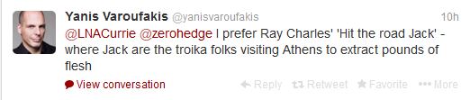 «I prefer Ray Charles’ ‘Hit the road Jack’ – where Jack are the troika folks visiting Athens to extract pounds of flesh».