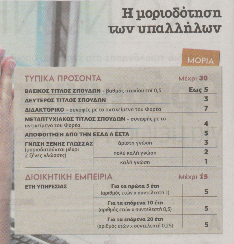 Στο έγγραφο που εστάλη από το υπουργείο Παιδείας προς τις διοικήσεις των ΑΕΙ-ΤΕΙ περιγράφονται λεπτομερώς τα κριτήρια μοριοδότησης που σχετίζονται με τα τυπικά προσόντα (βασικός τίτλος σπουδών, μεταπτυχιακά, διδακτορικά, ξένες γλώσσες), τη διοικητική εμπειρία αλλά και τον τρόπο εισαγωγής στη δημόσια διοίκηση.