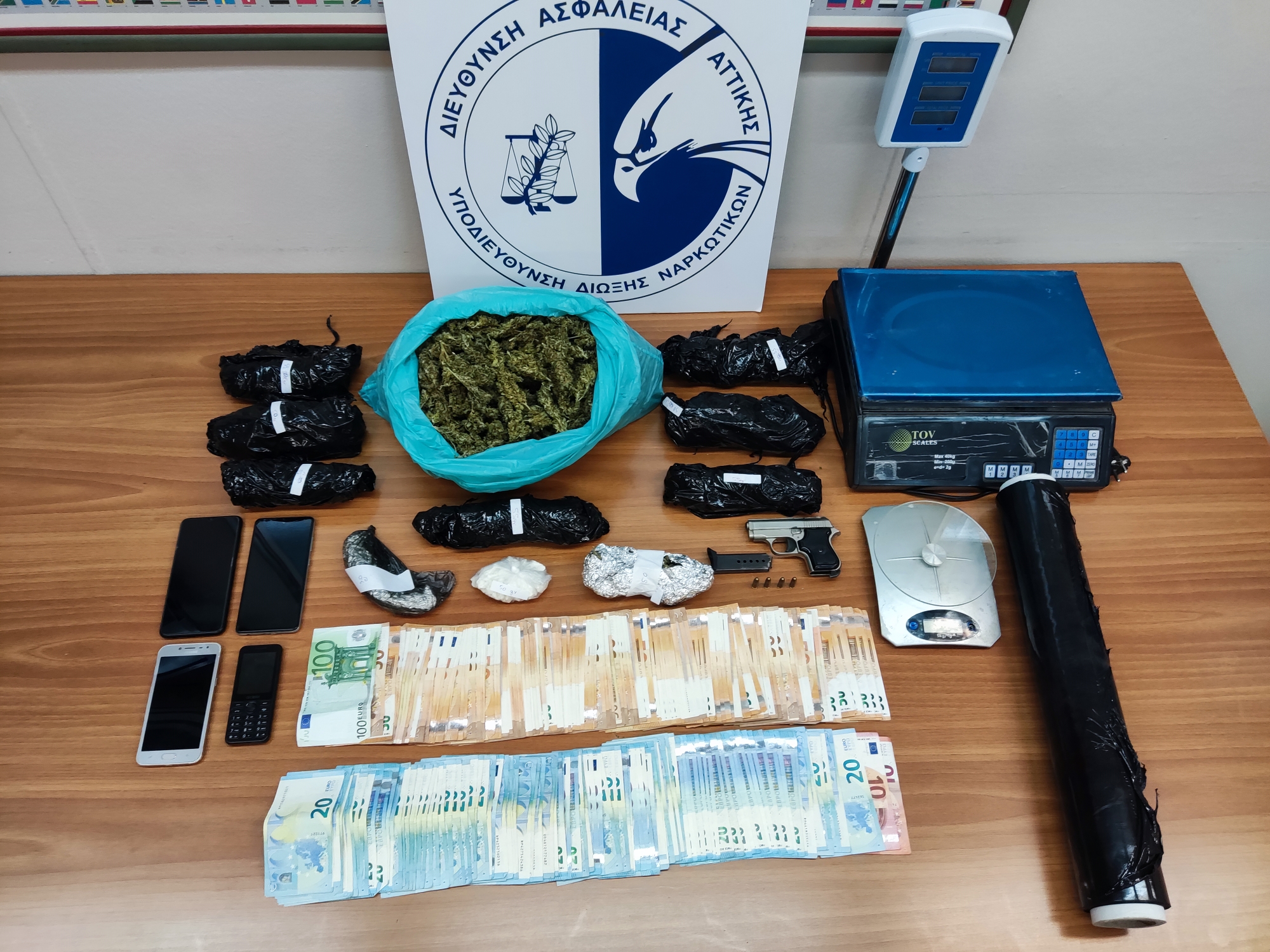 Συνολικά κατασχέθηκαν 50 γραμμάρια κοκαΐνης και 1 κιλό ακατέργαστης κάνναβης. Επίσης οι αστυνομικοί εντόπισαν 9.230 ευρώ, ένα πιστόλι και 4 φυσίγγια των 6.35 mm, δύο αυτοκίνητα, δύο ηλεκτρονικές ζυγαριές ακριβείας και τέσσερα κινητά.
