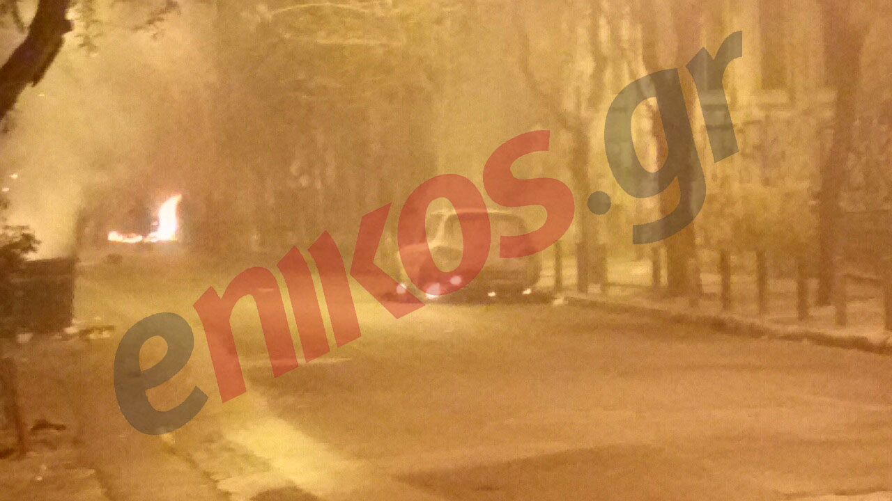 Σύμφωνα με τα πρώτα στοιχεία, τέσσερα αυτοκίνητα τυλίχθηκαν στις φλόγες, ενώ οι κάδοι χρησιμοποιήθηκαν ως οδοφράγματα από την ομάδα των αγνώστων.