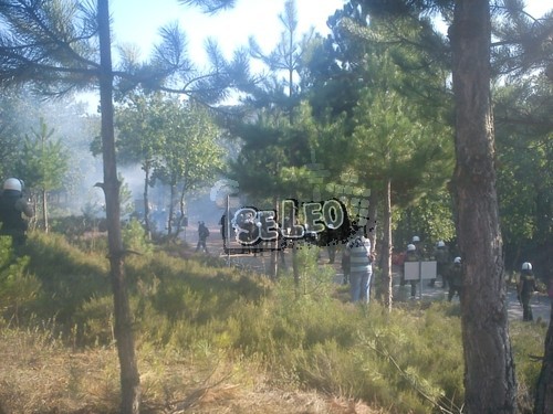 Πολεμικό το κλίμα αυτή την ώρα στο δάσος των Σκουριών στη Χαλκιδική. Κάτοικοι που αντιδρούν στη λειτουργία των μεταλλείων χρυσού επιδίδονται σε πετροπόλεμο εναντίον των αστυνομικών δυνάμεων που απαντούν με χρήση χημικών.