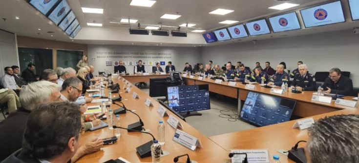 Τη σύσκεψη συγκάλεσε ο υπουργός Κλιματικής Κρίσης και Πολιτικής Προστασίας, Βασίλης Κικίλιας και θα συμμετέχουν ΟΤΑ, Πυροσβεστικό Σώμα, ΕΛΑΣ, Λιμενικό Σώμα, Ένοπλες Δυνάμεις, ΕΚΑΒ, καθώς και εκπρόσωποι εμπλεκόμενων φορέων (ΟΑΣΠ, ΔΕΔΔΗΕ, ΤΕΕ κ.α.).