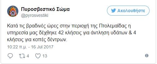 Πολλά σπίτια πλημμύρισαν, οι δρόμοι μετατράπηκαν σε ποτάμια, ενώ δεν έλειψαν και οι πτώσεις δέντρων λόγω των ισχυρών ανέμων. Είναι, μάλιστα, χαρακτηριστικό πως σε tweet της η Πυροσβεστική ανέφερε ότι δέχθηκε κατά τις βραδινές ώρες 42 κλήσεις για άντληση υδάτων και τέσσερις κλήσεις για κοπές δέντρων.Δείτε την ανάρτηση της Πυροσβεστικής: