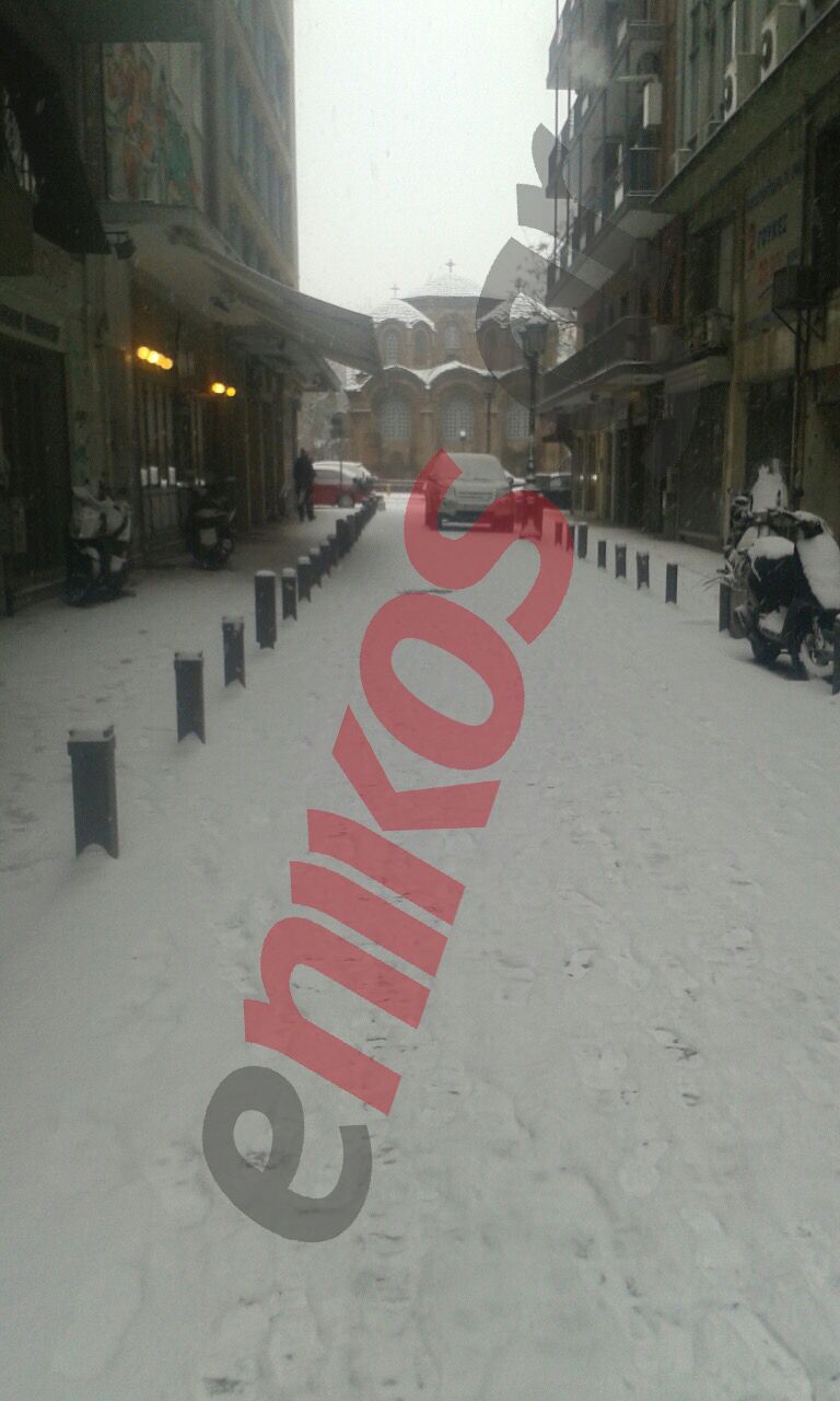 Η έντονη χιονόπτωση στη Θεσσαλονίκη έχει “ντύσει” στα λευκά τους δρόμους της πόλης. Κεντρικοί δρόμοι, αλλά και τα στενά, όπως φαίνεται στις φωτογραφίες που μας έστειλε, αναγνώστης του enikos.gr, τα πάντα έχουν καλυφθεί από το χιόνι.