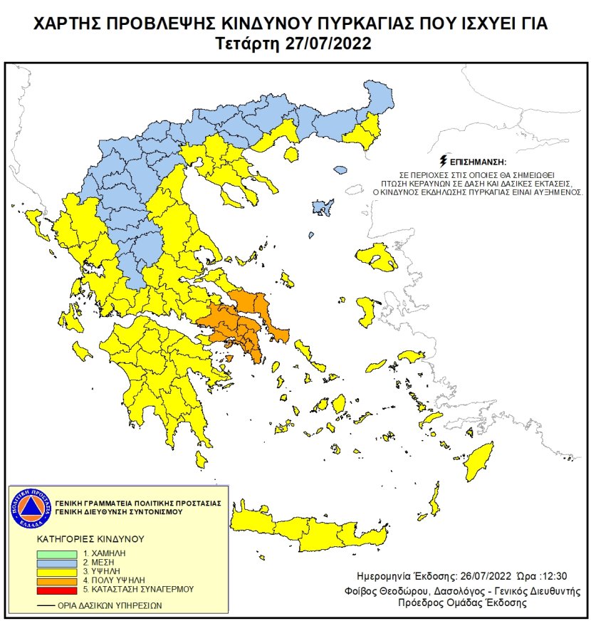 Παράλληλα, τίθεται σε εφαρμογή το 2ο στάδιο επιχειρησιακής ετοιμότητας του Π.Σ. και θα πραγματοποιηθούν περιπολίες εναέριας επιτήρησης, καθώς και περιπολίες από πυροσβεστικές, αστυνομικές και στρατιωτικές δυνάμεις.