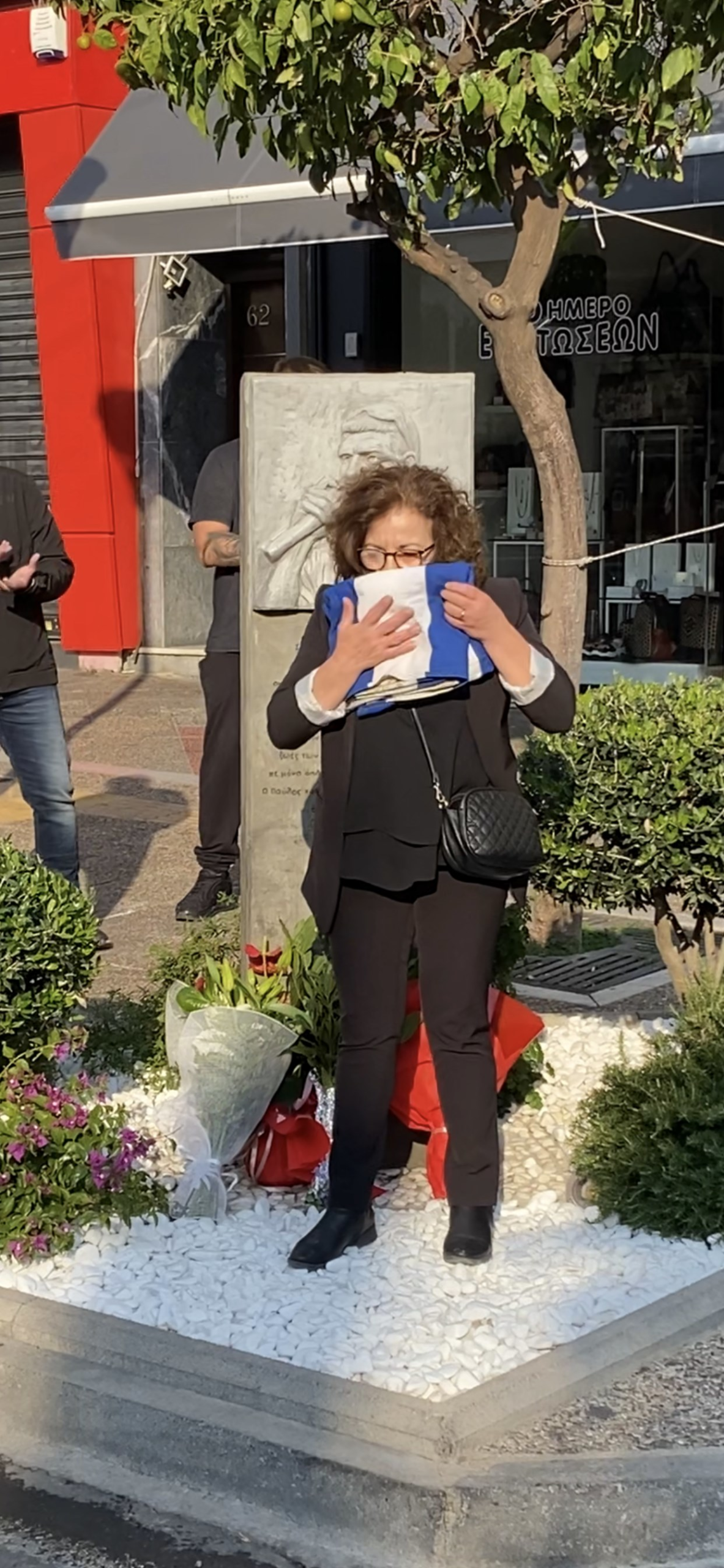 Πολυτεχνείο: Η Μάγδα Φύσσα με την αιματοβαμμένη σημαία στο σημείο που δολοφονήθηκε ο Παύλος – ΒΙΝΤΕΟ