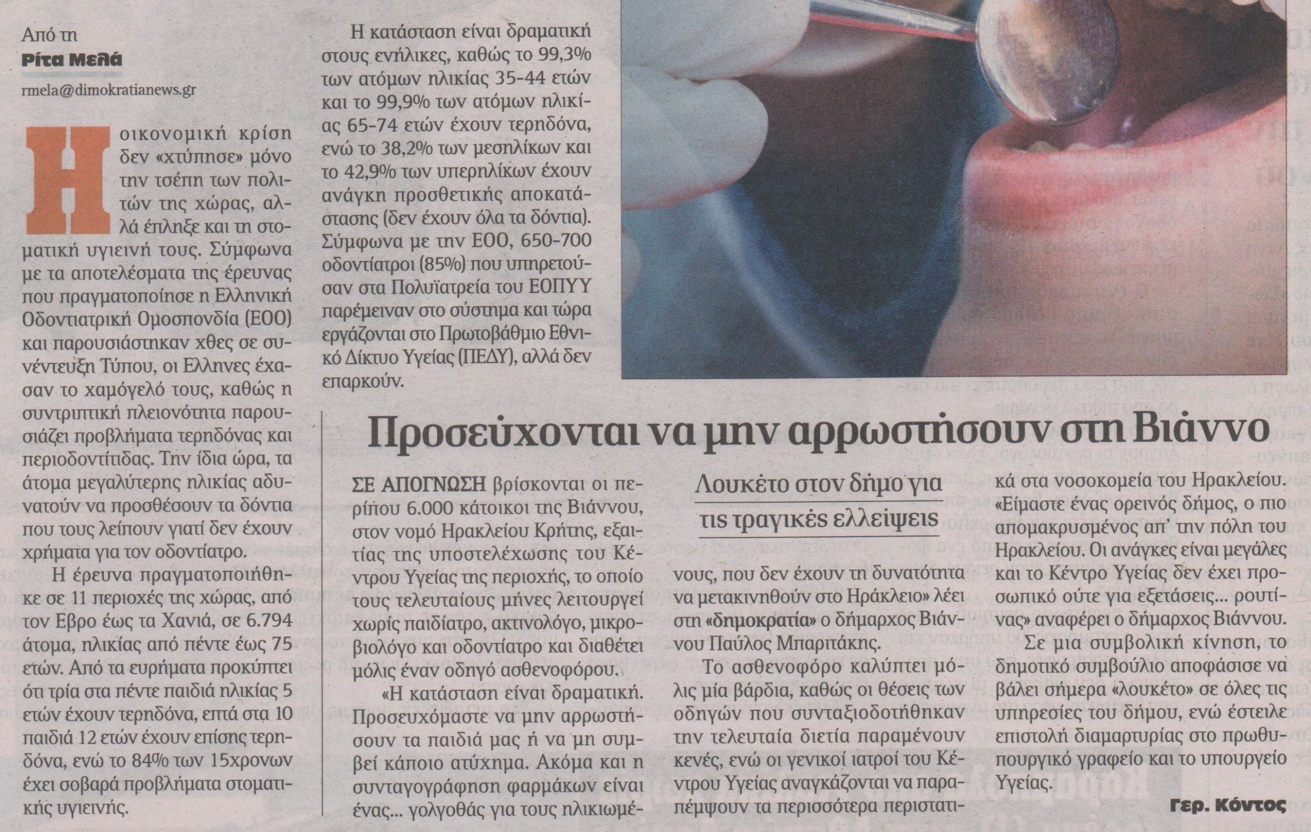 Η οικονομική κρίση δεν «χτύπησε» μόνο την τσέπη των πολιτών της χώρας, αλλά έπληξε και τη στοματική υγιεινή τους.
