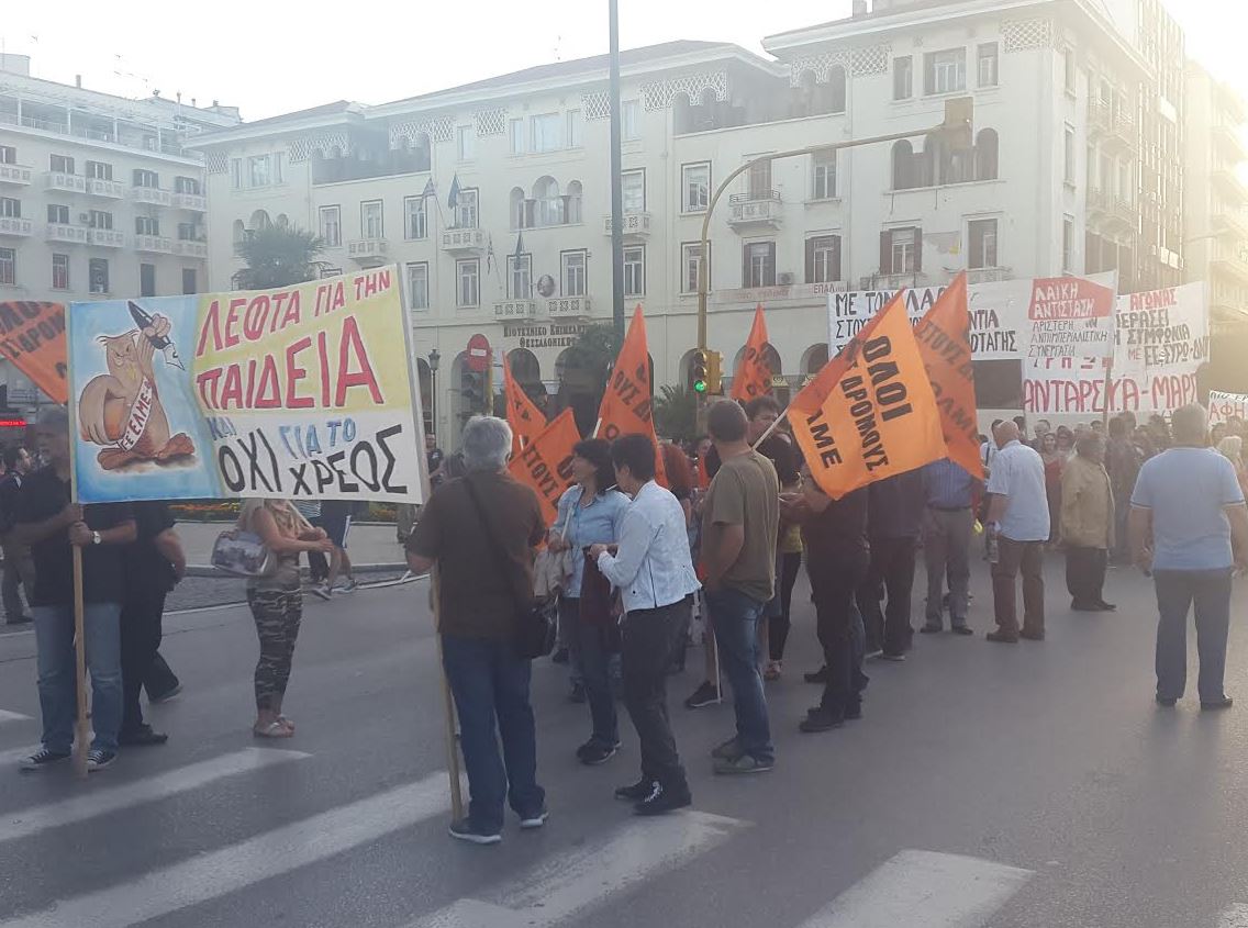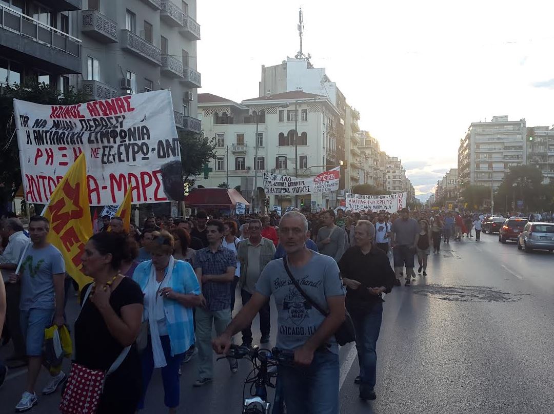 Συγκέντρωση και πορεία διαμαρτυρίας ενάντια στα μνημόνια και τη λιτότητα πραγματοποιήθηκε στη Θεσσαλονίκη. Πολίτες συγκεντρώθηκαν αρχικά στο άγαλμα του Ελευθέριου Βενιζέλου και στη συνέχεια, κρατώντας πανό και φωνάζοντας συνθήματα κατά των δανειστών, έκαναν πορεία σε κεντρικούς δρόμους της πόλης η οποία κατέληξε στην πλατεία Λευκού Πύργου.