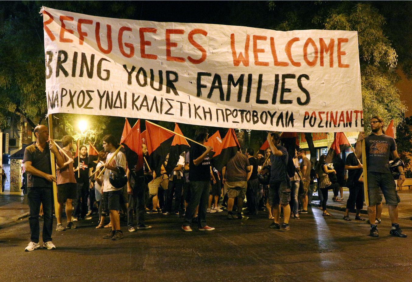 Με το σύνθημα να παραμείνουν ανοιχτά τα σύνορα για πρόσφυγες και μετανάστες πραγματοποιήθηκε απόψε συγκέντρωση αριστερών οργανώσεων στην πλατεία Κάνιγγος και πορεία προς τα γραφεία της Ευρωπαϊκής Ένωσης.