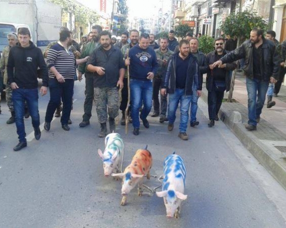 Μέχρι και τα γουρούνια επιστρατεύτηκαν στην πορεία που πραγματοποίησαν αγρότες και κτηνοτρόφοι στο κέντρο του Ρεθύμνου.