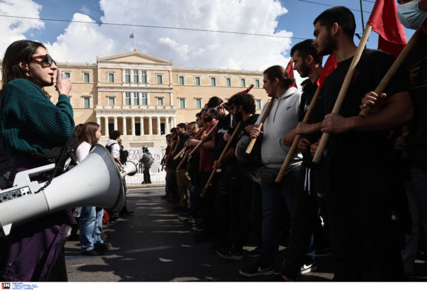 Οι φοιτητές διεκδικούν δημόσιες και δωρεάν σπουδές, ενώ με πανό και συνθήματα διαμαρτύρονται με φόντο τον νόμο για τα μη κρατικά, μη κερδοσκοπικά πανεπιστήμια.