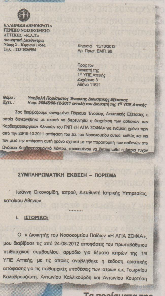Πόρισμα καίει γιατρούς του “Αγ. Σοφία”
