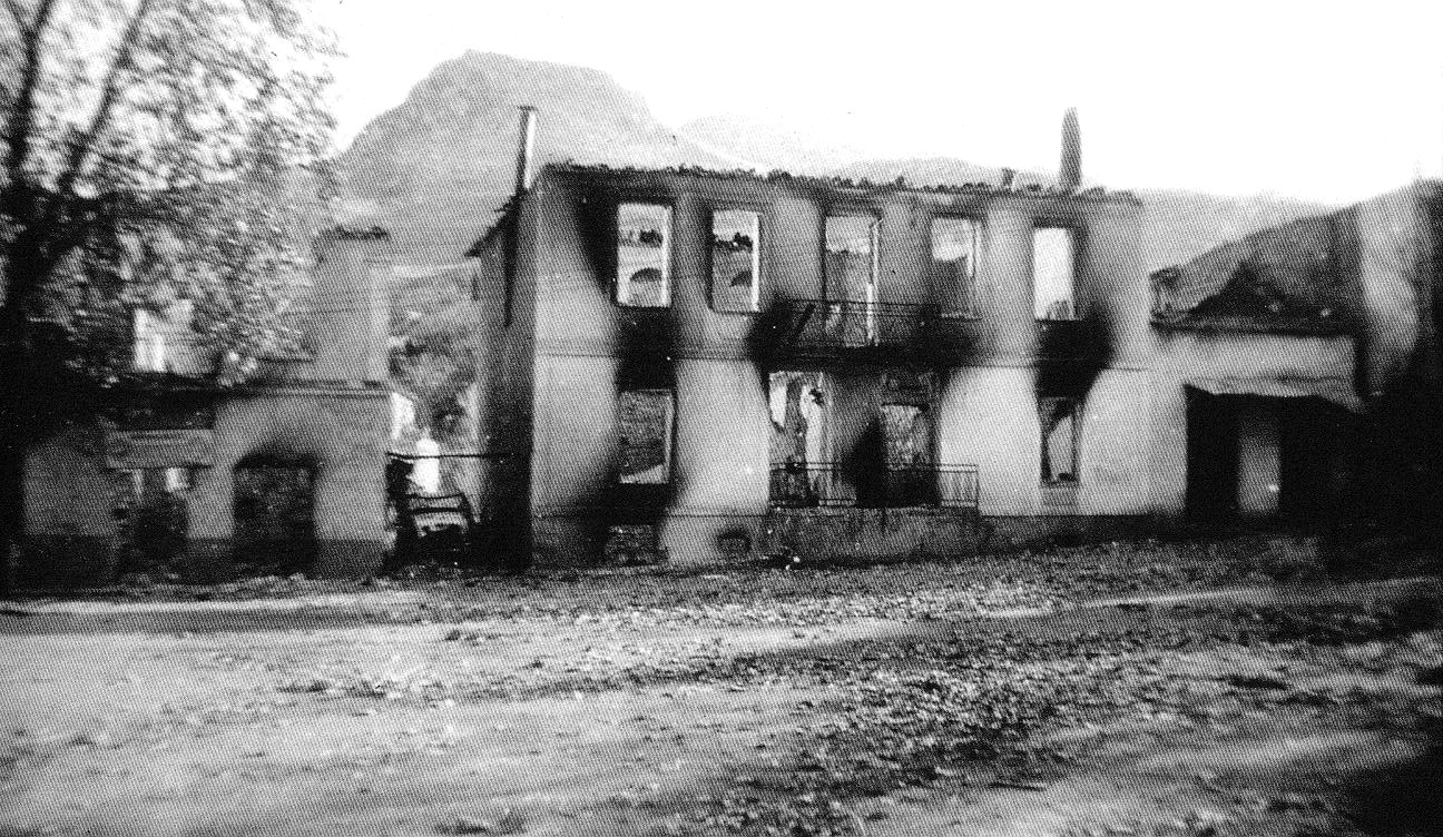 Και η πιο διεστραμμένη ψυχή δεν θα ’ταν δυνατόν να συλλάβει την εκτέλεση κακουργήματος τέτοιας εκτάσεως. Τα Καλάβρυτα δεν έπρεπε να ξανακτισθούν! Τα ερείπια έπρεπε να μείνουν προσκύνημα των ελεύθερων ανθρώπων. Μια νεκρή πολιτεία! Γιατί πάνω σ’ αυτήν έβαλε τη σφραγίδα της η σαδιστική κραιπάλη των βανδάλων Ούννων του 20ού αιώνα.