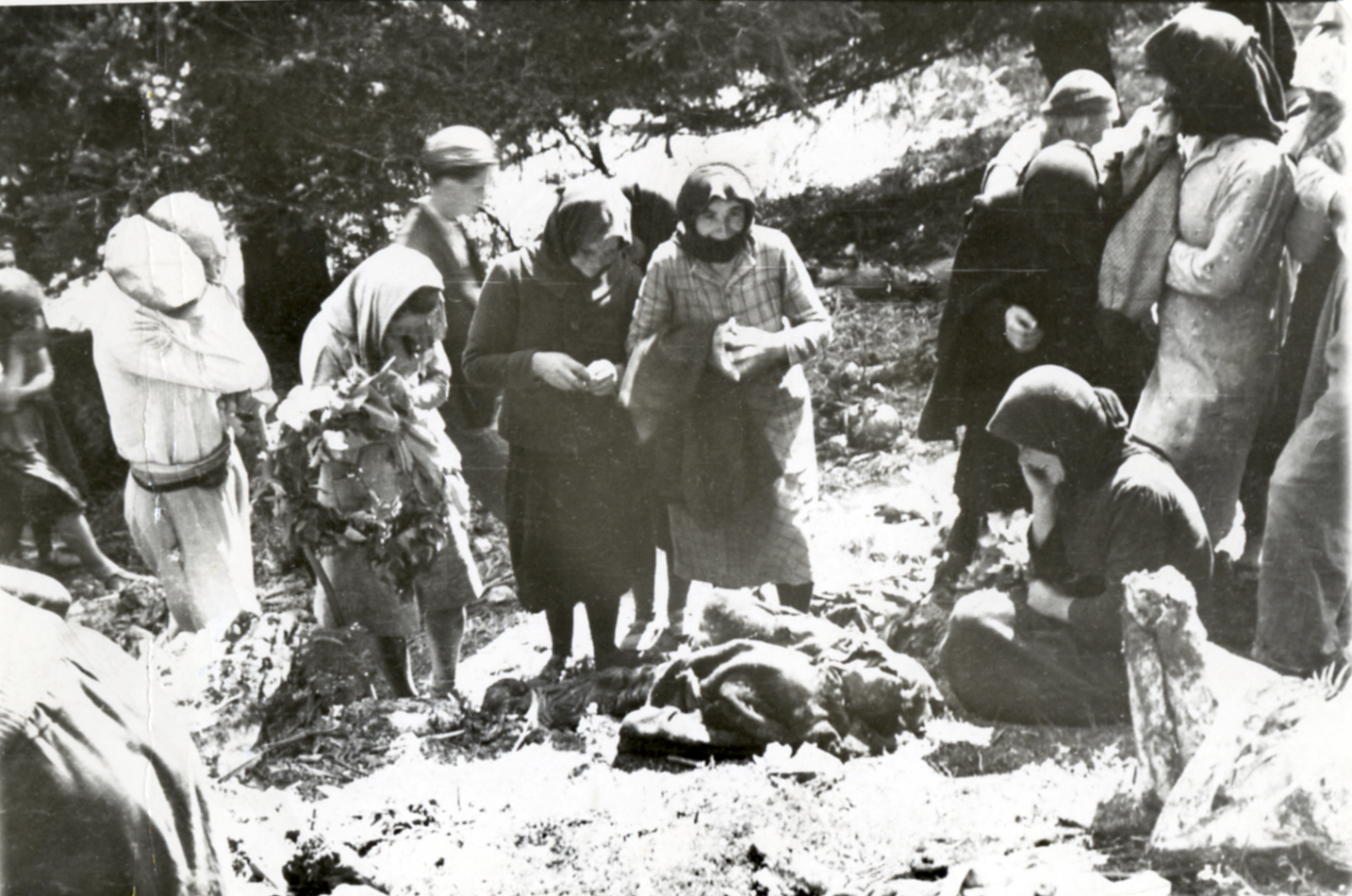 Γύρω στα δέκα μυδράλια άρχισαν να ξεχύνουν φωτιά και σίδερο. Απέλπιδες φωνές και κλάματα ακούγονται από τους μελλοθάνατους. Σε λίγο απόλυτη σιγή. Η μυρωδιά του θανάτου αναδύεται στη βουνοπλαγιά και οι δολοφόνοι, περιφερόμενοι, ρίχνουν τη χαριστική βολή σε όποιον σαλεύει…